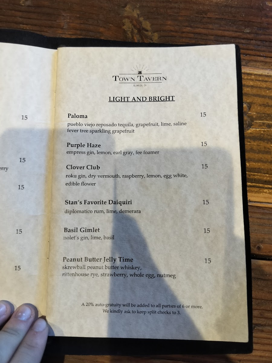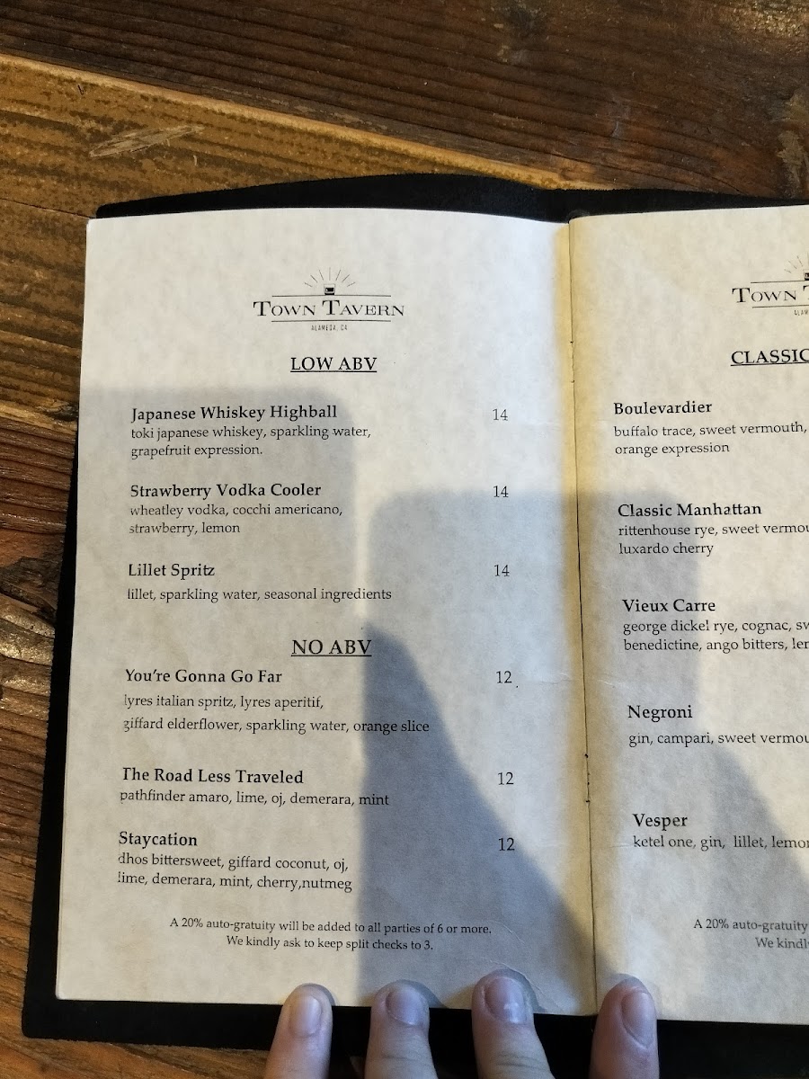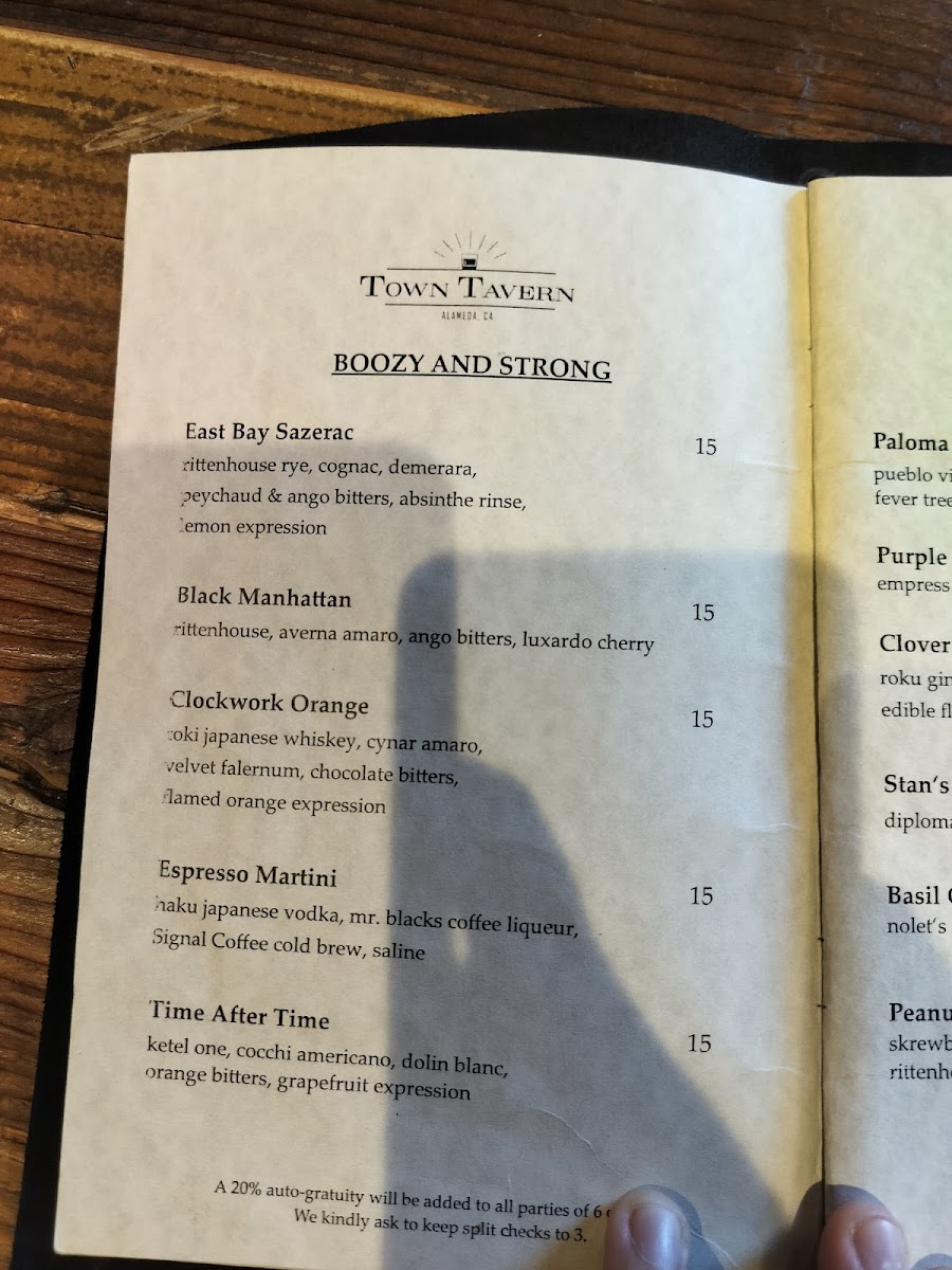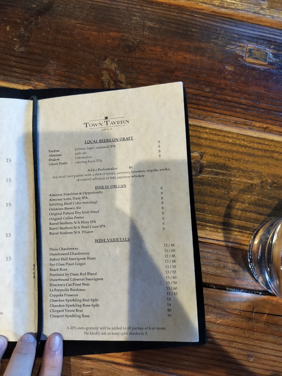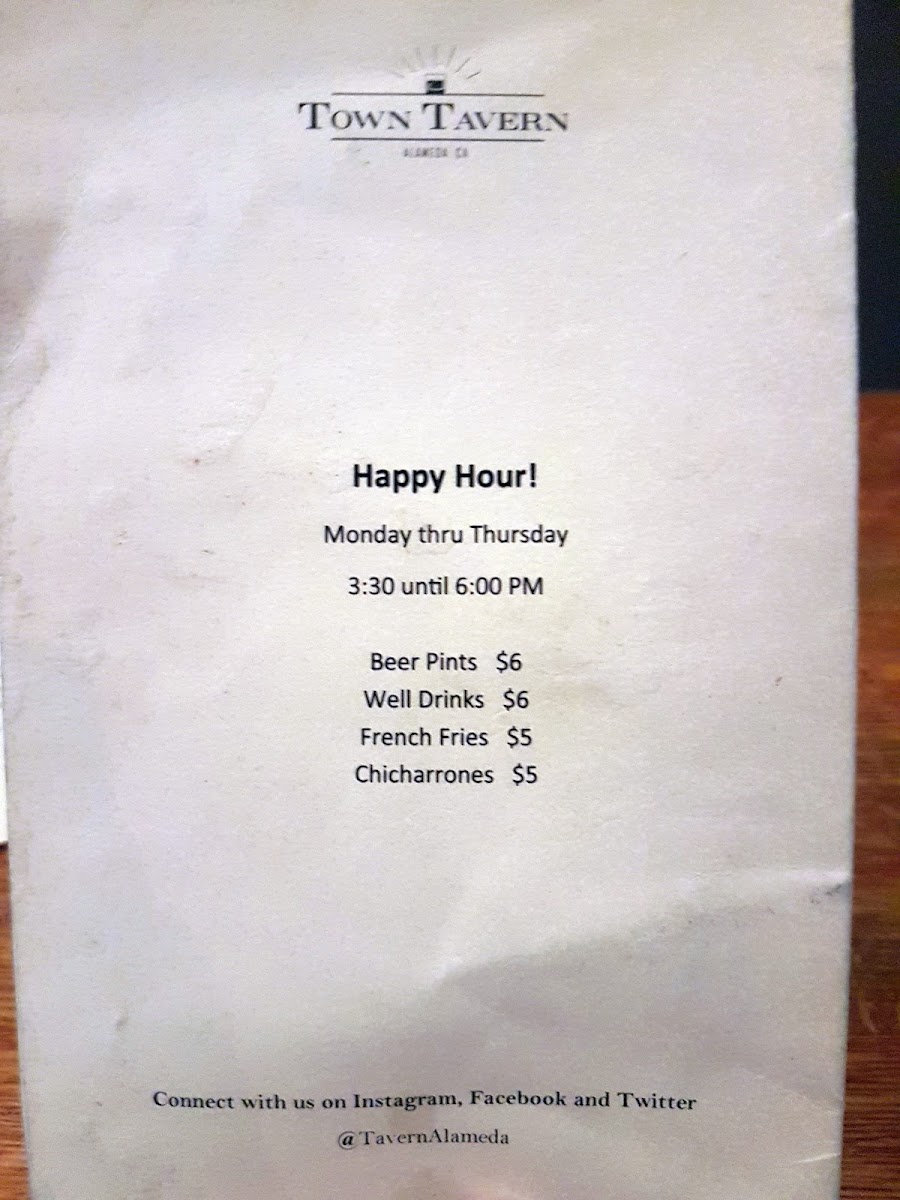 Town Tavern - Alameda Menu